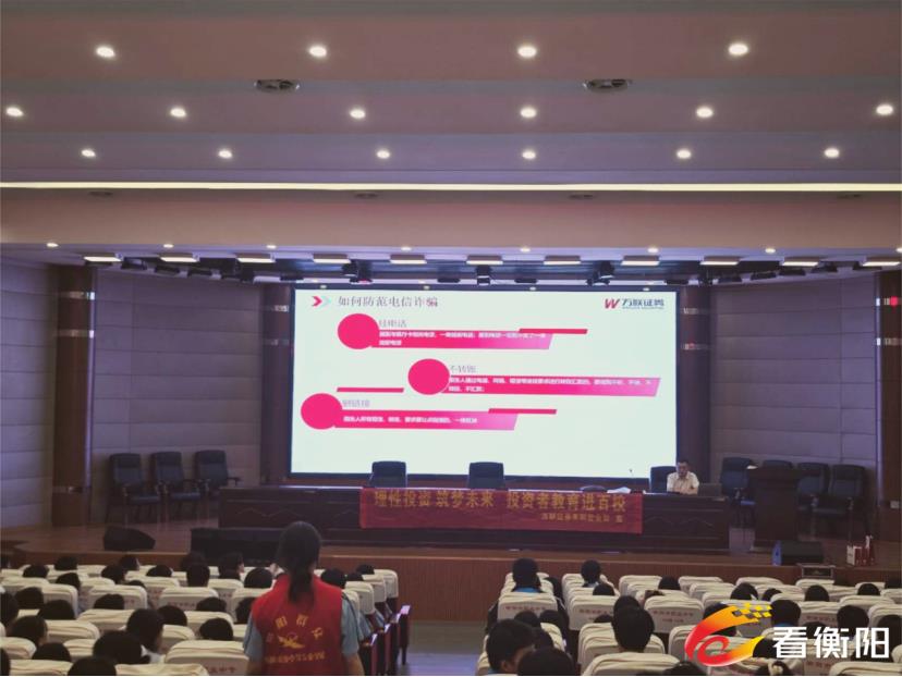 在国家网络安全宣传周校园日当天晚自习,学校精心组织了一次“网络安全”主题教育讲座,特邀请了万联证券股份有限公司耒阳营业部的工作人员来进行宣讲。万联证券耒阳营业部投资顾问任翔用一个个生动的案例,为师生代表讲解了防范网络金融诈骗、非法集资和校园套路贷等案例,活动现场气氛活跃,师生们踊跃答题,进一步提高了网络防范意识。