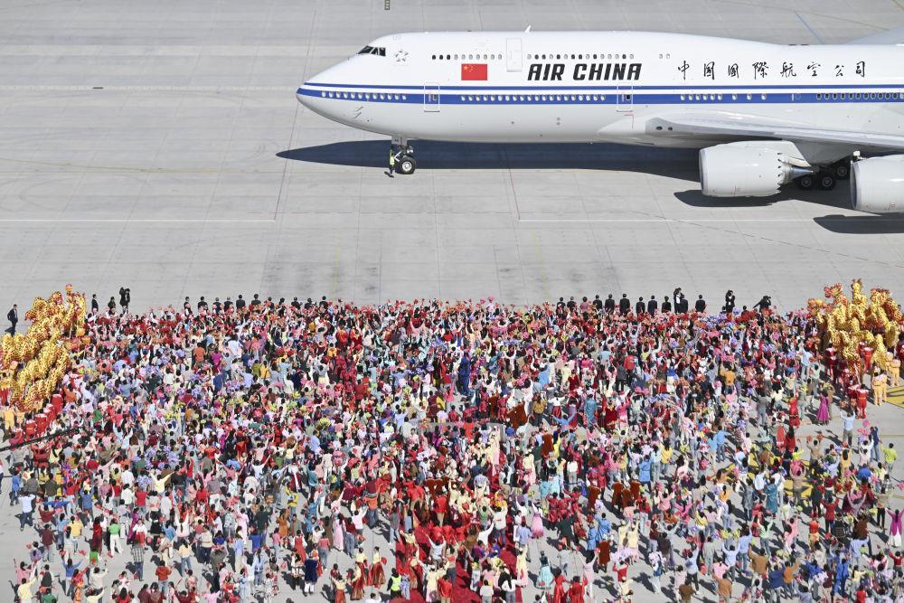 9月23日,中共中央总书记、国家主席、中央军委主席习近平率中央代表团抵达乌鲁木齐,出席新疆维吾尔自治区成立70周年庆祝活动。