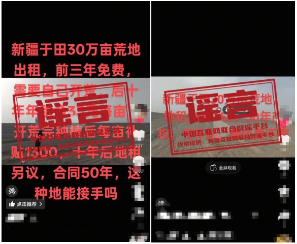 谣言:新疆于田有30万亩荒地出租?