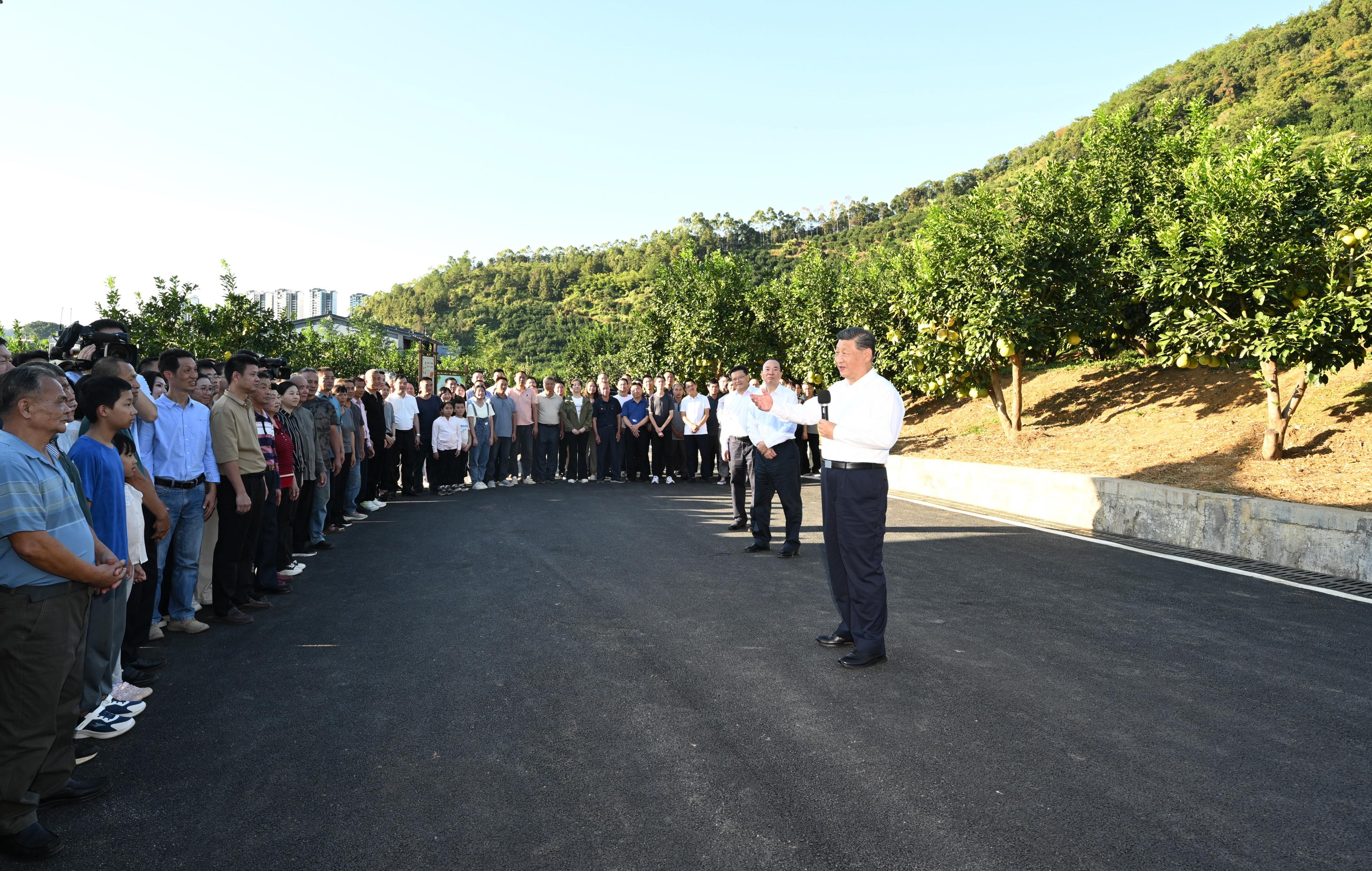 立冬时节,正是柚子成熟期。金灿灿的柚子压弯了枝头。总书记沿着果林小道边走边看,观长势、话树龄、问收成。林子深处,他遇到一群果农。
