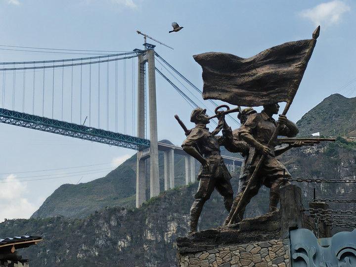 这是2025年4月28日拍摄的贵州花江峡谷大桥。9月28日,新的世界第一高桥——贵州花江峡谷大桥建成通车。近处的则是一座建于1898年、由14根铁链组成的花江铁索桥。1935年4月,中央红军右路纵队挺进黔西南,死守花江铁索桥这一战略要冲,确保红军主力顺利抢渡北盘江。新旧两座桥,横跨着百年历史风云,见证着血与火的艰辛历程。英魂永存映山河 壮志长燃照古今红色沃土记录着中国革命的光辉历程宝贵精神于贵州儿女血脉中薪火相传
