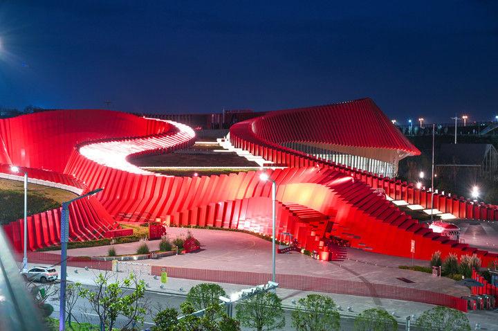 这是2025年11月15日拍摄的贵州长征文化数字艺术馆——“红飘带”夜景。