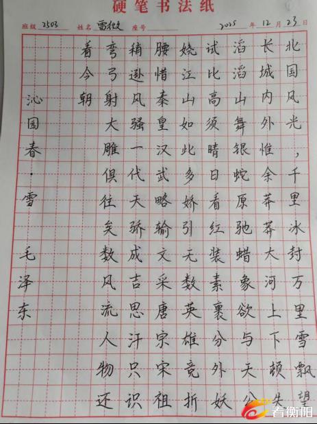 为纪念毛泽东同志诞辰132周年,传承红色基因,弘扬中华优秀传统文化,近日,常宁市第一中学举行了以“书写红色历史,铭记伟大领袖”为主题的2025年学生硬笔书法比赛。本次活动由学校团委与语文组联合主办,高一、高二年级全体班级踊跃参与,在笔墨流转间传承红色基因,彰显汉字魅力。