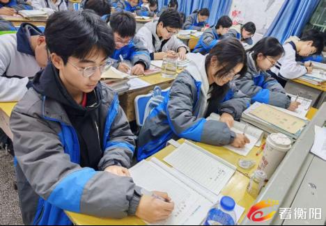 比赛分年级有序开展,高一年级于12月23日晚自习进行,高二年级于12月26日课间练字时间进行。赛场上,同学们坐姿端正、凝神专注,笔尖在书法纸上灵动游走,将《沁园春·雪》的豪迈、《沁园春·长沙》的昂扬与《七律·长征》的坚毅融入笔端,一笔一画间尽显对汉字艺术的热爱和对伟人的敬仰,沙沙书写声交织成校园里最动人的文化乐章。