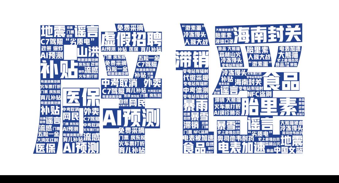 (2025年度网络谣言部分热词云图)