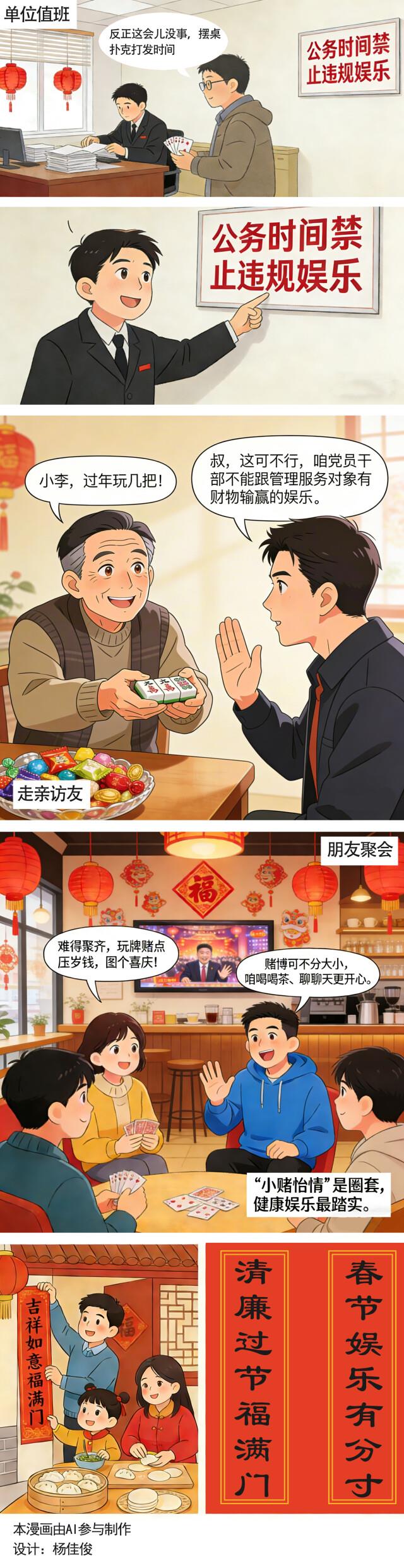 春节长假,有人选择与家人相伴,共享温馨时光;有人选择以书为友,在文字中寻得宁静;也有人踏上旅途,用脚步丈量远方的风景……放松身心的方式有很多,但对于党员干部来说,有些“娱乐”项目要谨慎选择。