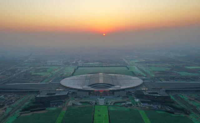 千年大计,交通先行。京雄城际铁路雄安站,是雄安新区首个重大交通项目。2020年12月27日,京雄城际铁路全线贯通,雄安站同步投入使用。这是2020年12月27日清晨拍摄的雄安站(无人机照片)。