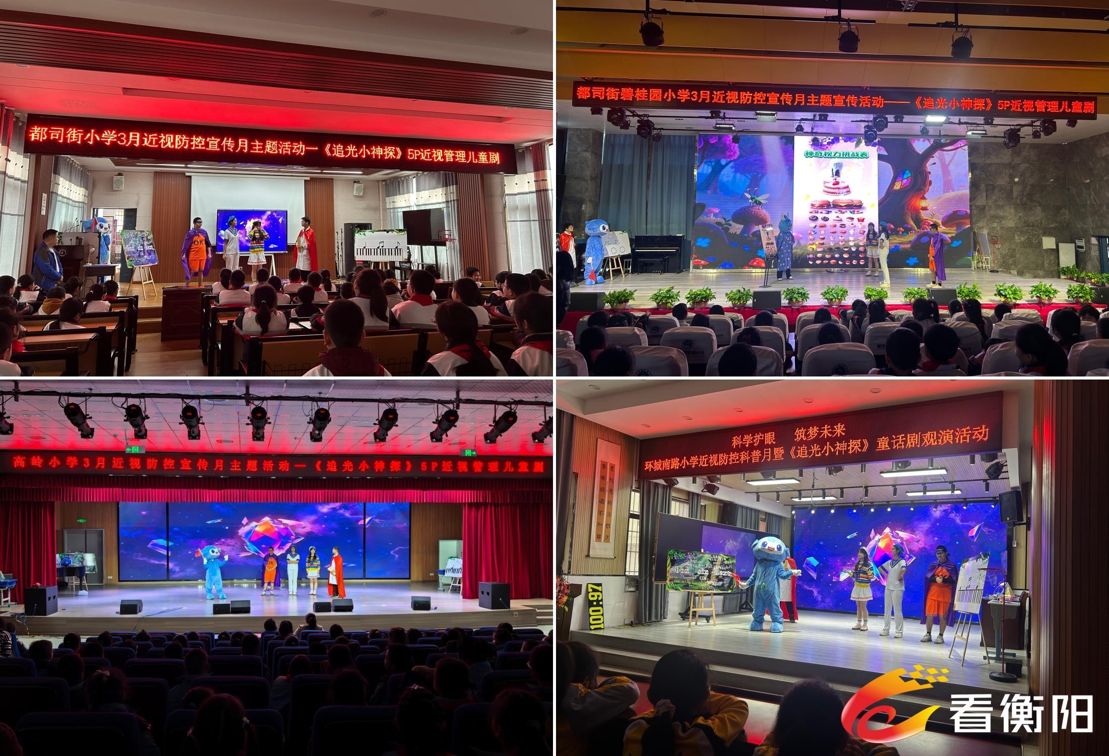 三月春风暖,护眼正当时。作为全国近视防控宣传教育月的重要行动之一,衡阳爱尔眼科医院携原创近视防控科普舞台剧《追光小神探》,先后走进都司街碧桂园小学、高岭小学、环城南路小学、都司街小学,开展了一系列趣味盎然、干货满满的科普巡演,为孩子们送上一份特殊的“光明礼物”,让护眼知识在欢声笑语中悄然扎根。