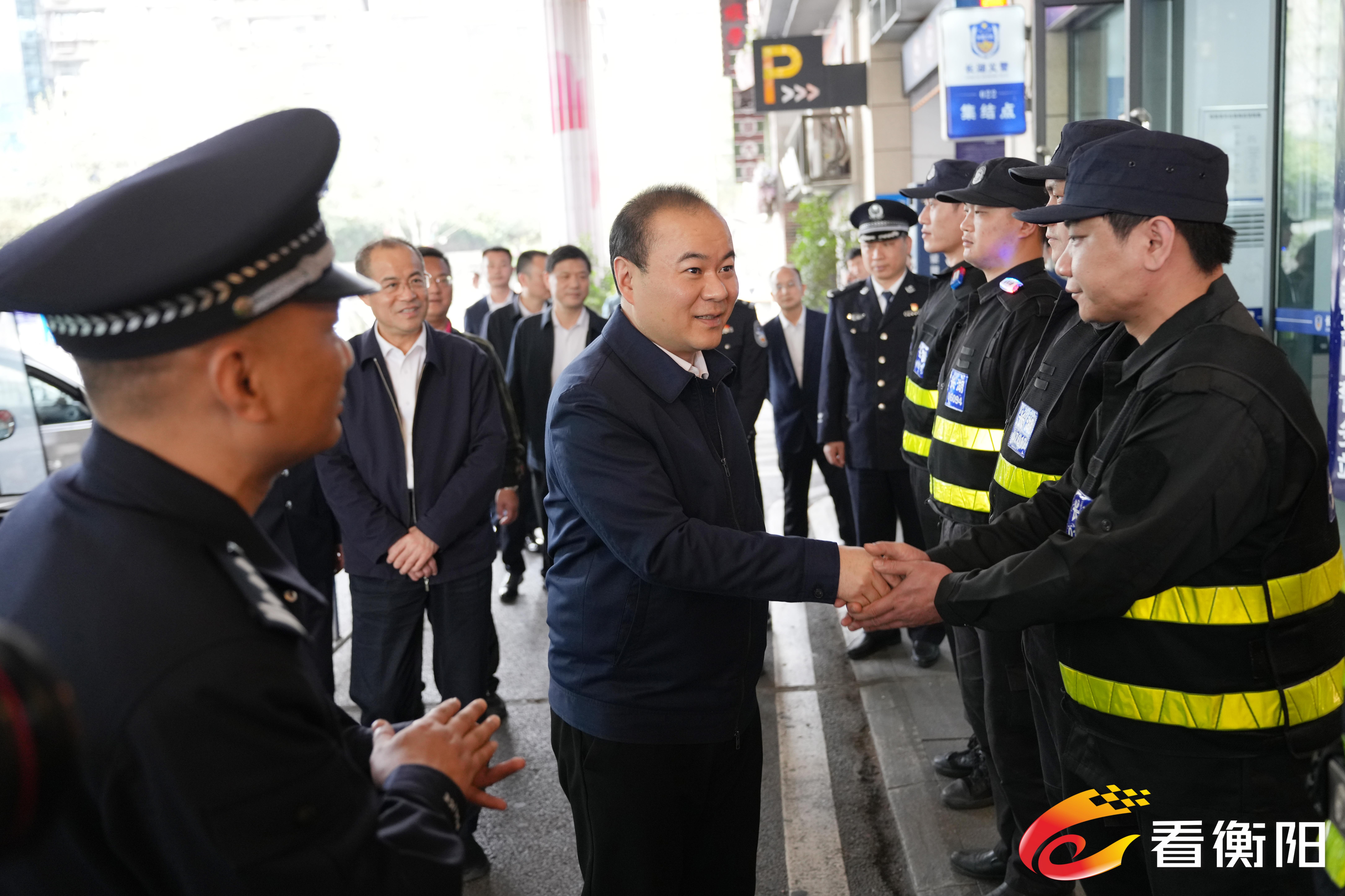朱健一行首先来到金钟大雁城商圈,检查督导人流密集场所安全稳定工作,慰问一线值班义警。他指出,要建强义警队伍,健全人员保障、常态训练与评优激励机制,广泛发动商户、物业及周边群众共同参与。要健全“公安主导、多方参与”的联防联控体系,加密巡查频次、完善应急预案,统筹做好节日重点防控与日常安全管理,切实守护商圈安全有序运行。要牢牢守住消防安全底线,分级分类开展常态化隐患排查整治,鼓励群众监督举报安全隐患,筑牢坚实的消防安全防线。