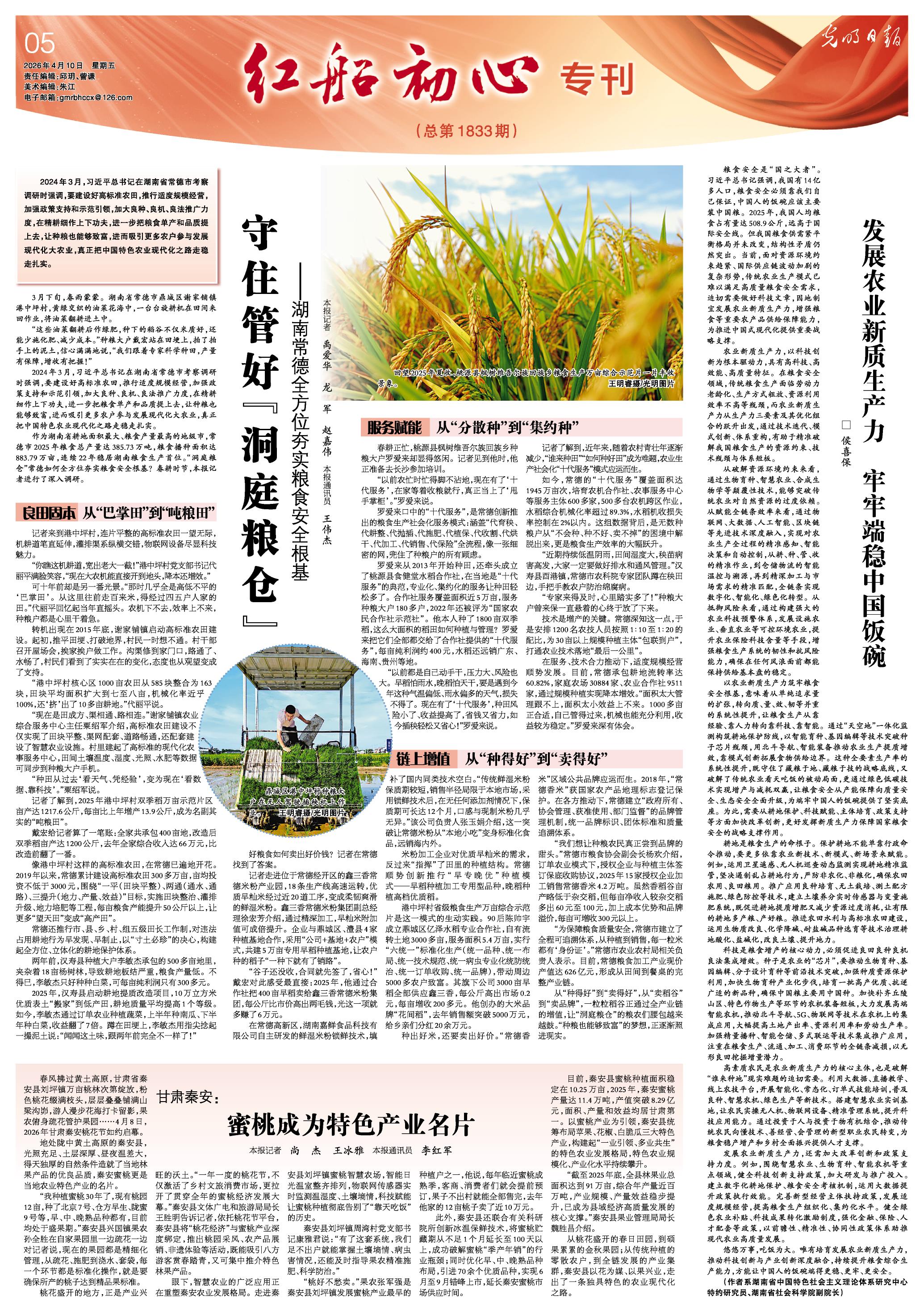 作为湖南省耕地面积最大、粮食产量最高的地级市,常德市2025年粮食总产量达385.73万吨,粮食播种面积达883.79万亩,连续22年稳居湖南粮食生产首位。“洞庭粮仓”常德如何全方位夯实粮食安全根基?春耕时节,本报记者进行了深入调研。