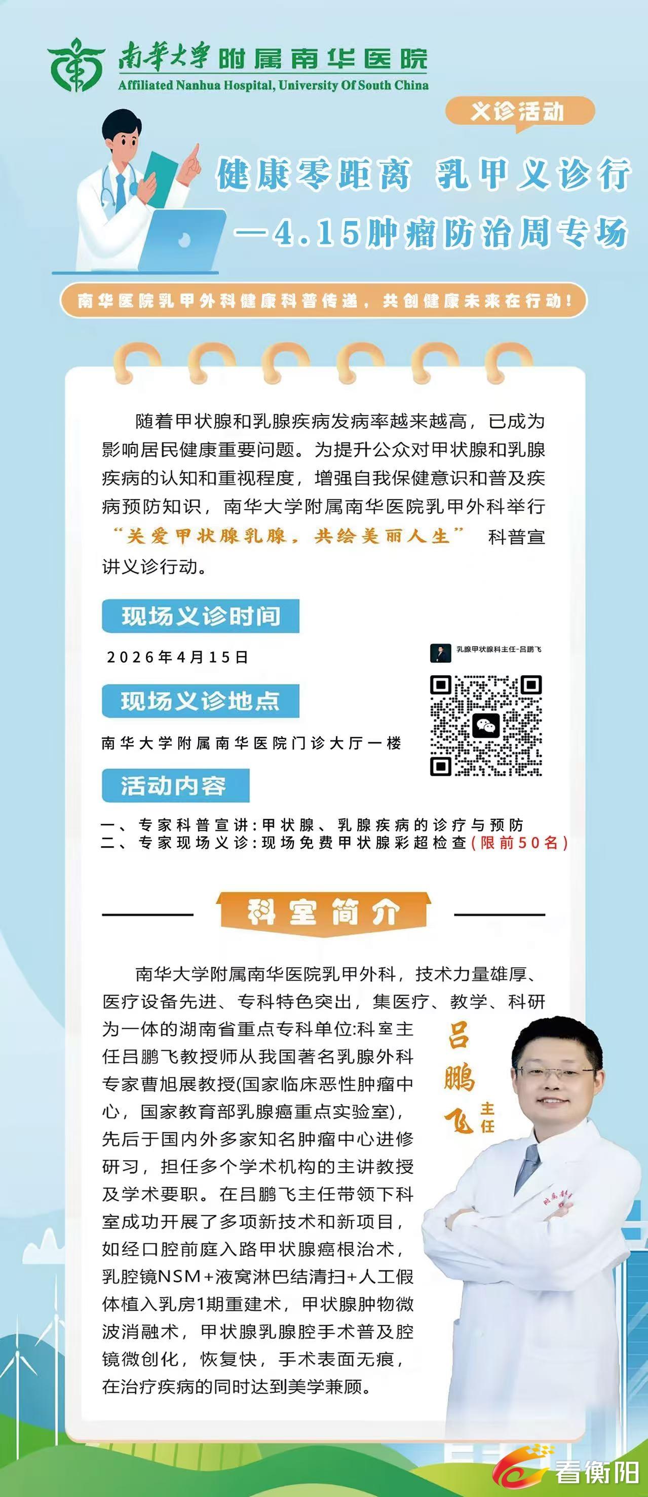 全国肿瘤防治宣传周 | 南华医院乳甲外科公益义诊活动预告
