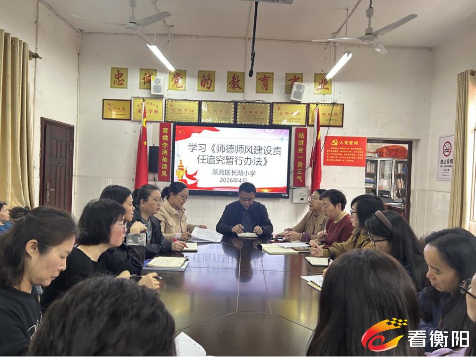 为进一步夯实师德师风建设根基,规范教师职业行为,4月13日,蒸湘区长湖小学组织全体教师开展《师德师风建设责任追究暂行办法》专题学习活动。