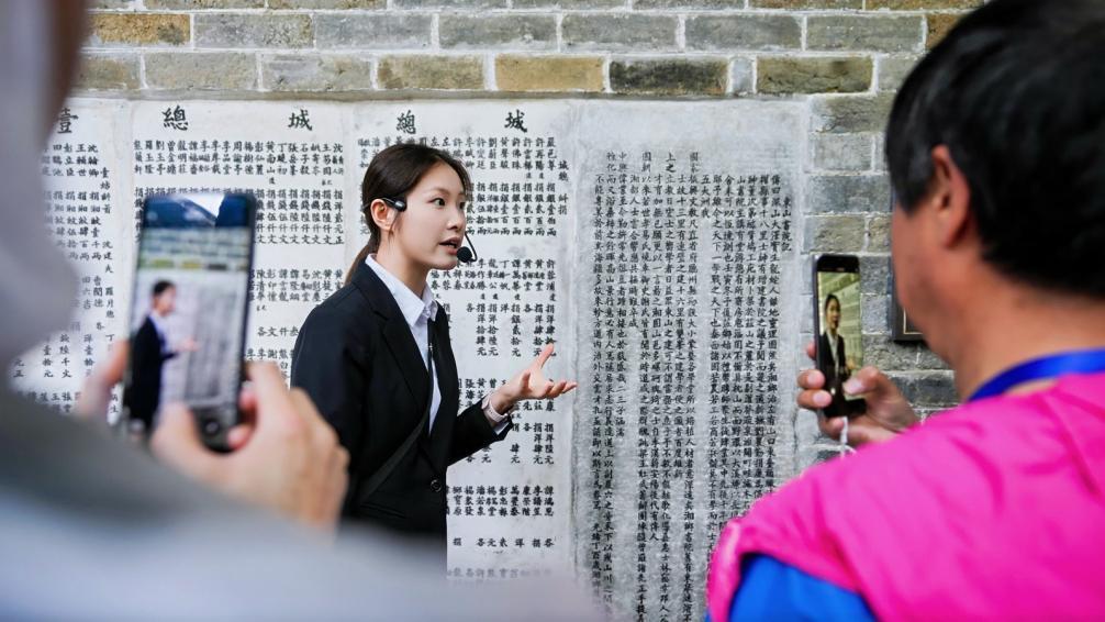 讲解员讲解碑文。胡鑫摄