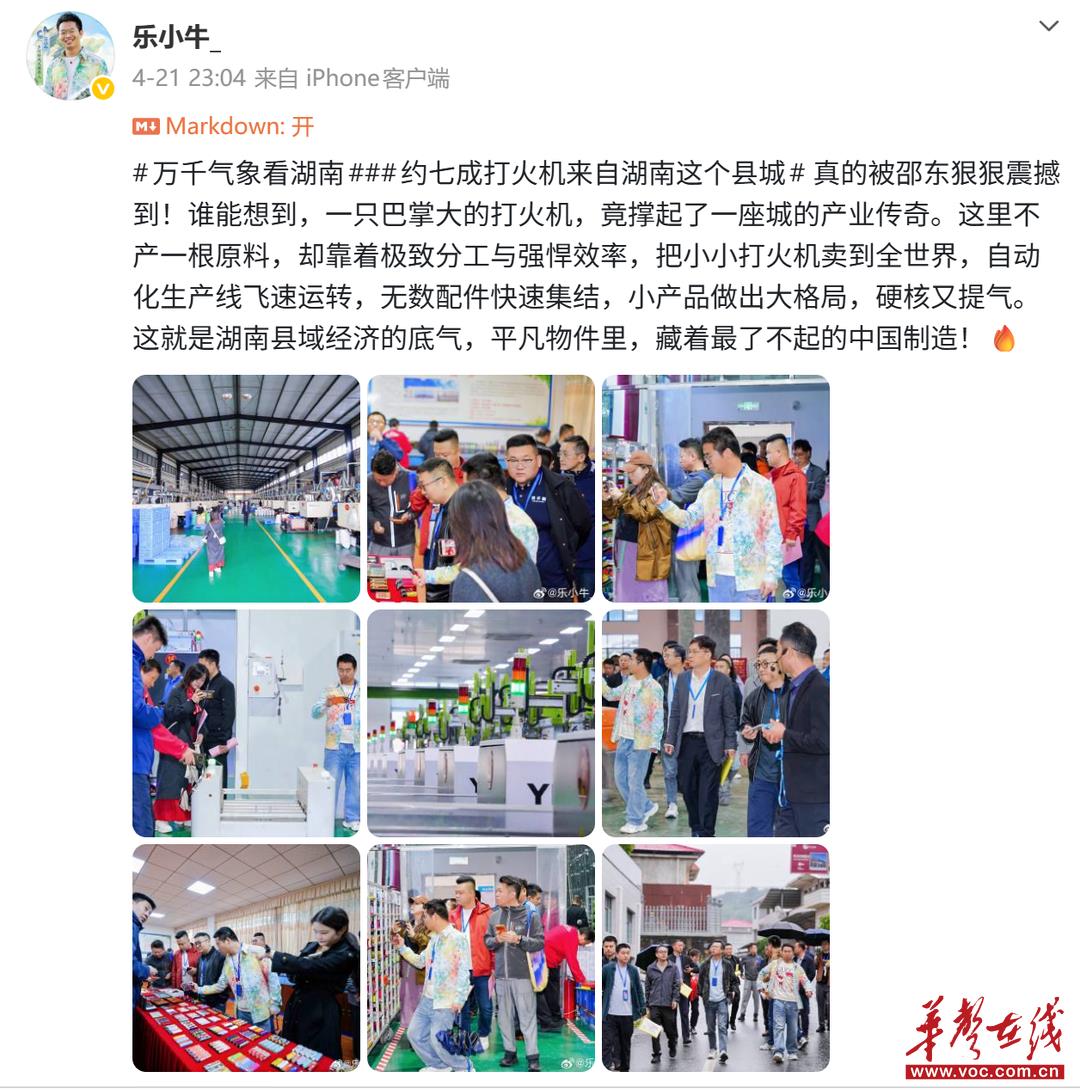 “一只小小的打火机,竟撑起了一座城的产业传奇,这就是了不起的中国制造!”网络名人@乐小牛由衷点赞。
