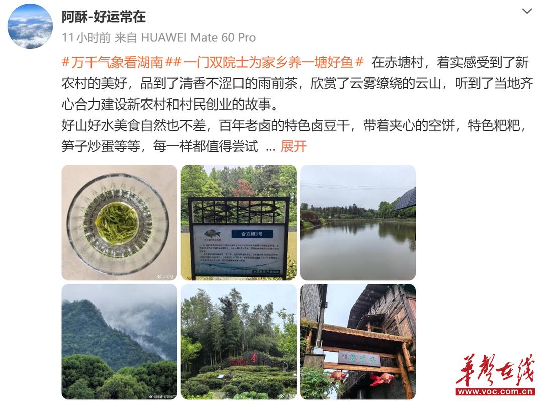 “在这里,我品到了清香不涩口的雨前茶,欣赏了云雾缭绕的云山,听到了当地齐心合力建设新农村和村民创业的故事,着实感受到了新农村的美好。”网络名人@阿酥分享着自己的探访感受。