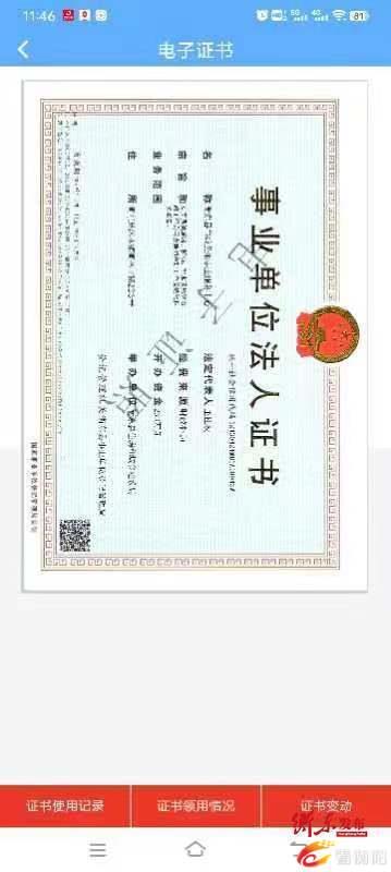 “掌上”亮证,衡东县发出首张事业单位法人电子证书