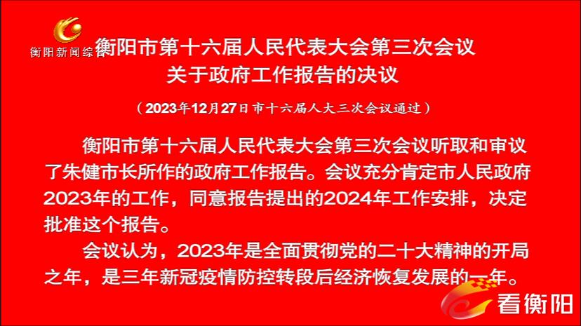 衡阳市第十六届人民代表大会第三次会议 关于政府工作报告的决议