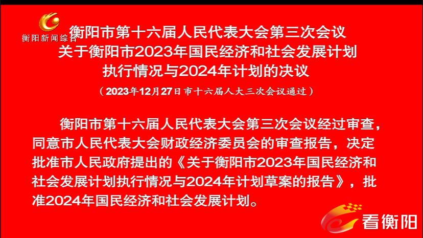 衡阳市第十六届人民代表大会第三次会议 关于衡阳市2023年国民经济和社会发展计划 执行情况与2024年计划的决议