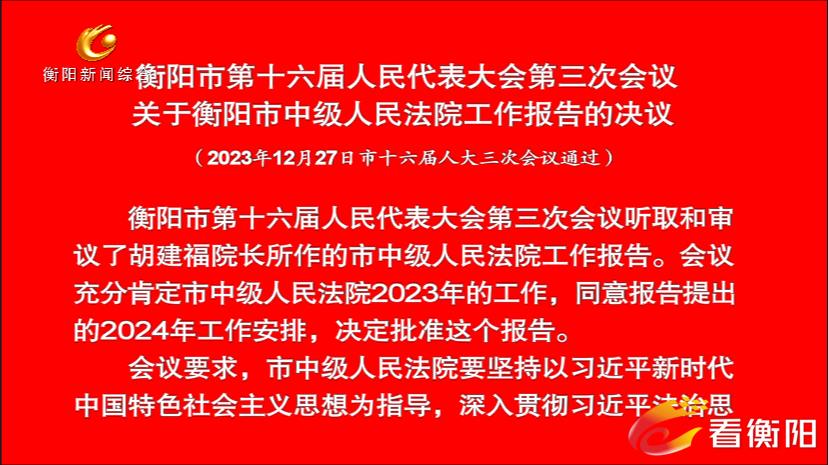 衡阳市第十六届人民代表大会第三次会议 关于衡阳市中级人民法院工作报告的决议
