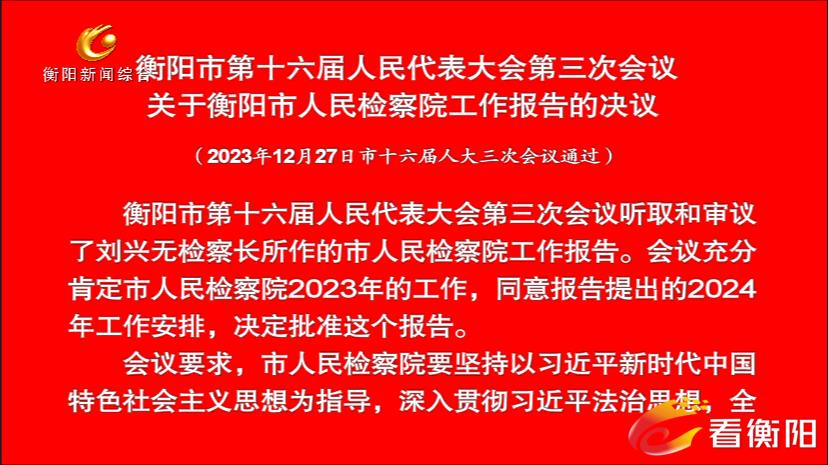 衡阳市第十六届人民代表大会第三次会议 关于衡阳市人民检察院工作报告的决议
