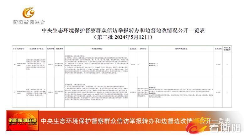 中央生态环境保护督察群众信访举报转办和边督边改情况公开一览表 (第三批 2024年5月12日)