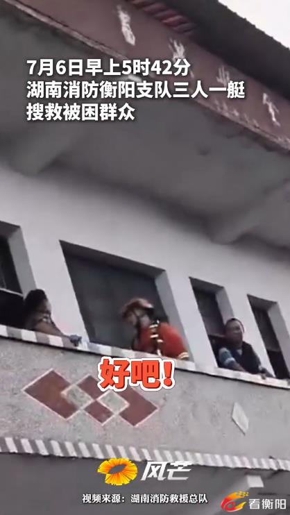 7月6日早上5时42分 湖南消防衡阳支队三人一艇搜救被困群众