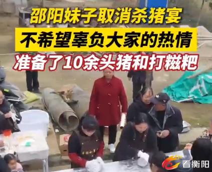 邵阳妹子取消杀猪宴 不希望辜负大家的热情 准备了10余头猪和打糍粑