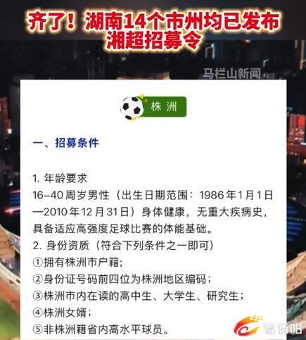 齐了!湖南14个市州均已发布湘超招募令