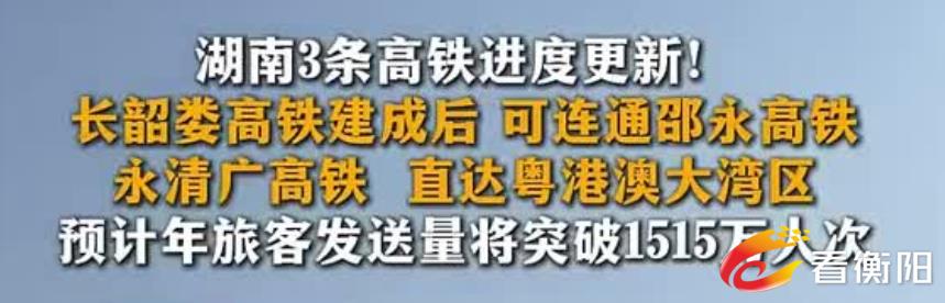 湖南3条高铁进度更新!长韶娄高铁建成后 可连通邵永高铁 永清广高铁 直达粤港澳大湾区 预计年旅客发送量将突破1515万人次