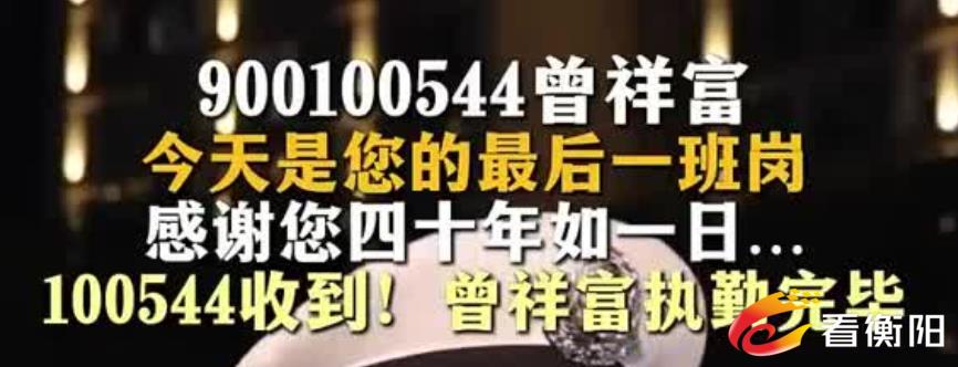 900100544曾祥富今天是您的最后一班岗 感谢您四十年如一日 100544收到! 曾祥富执勤完毕