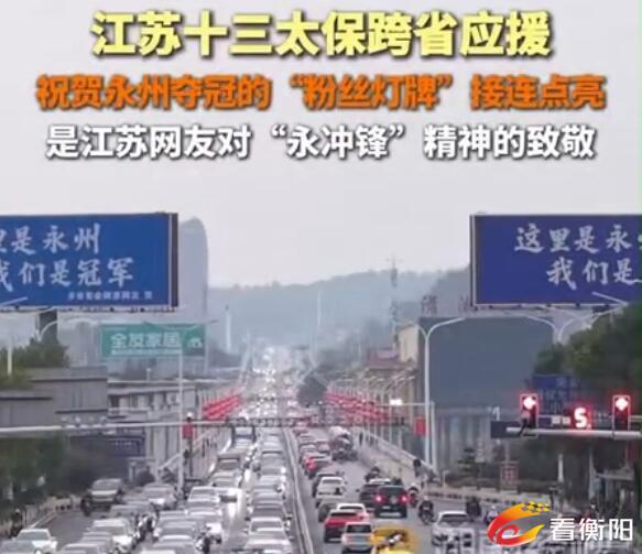 江苏十三太保跨省应援 祝贺永州夺冠的“粉丝灯牌”接连点亮