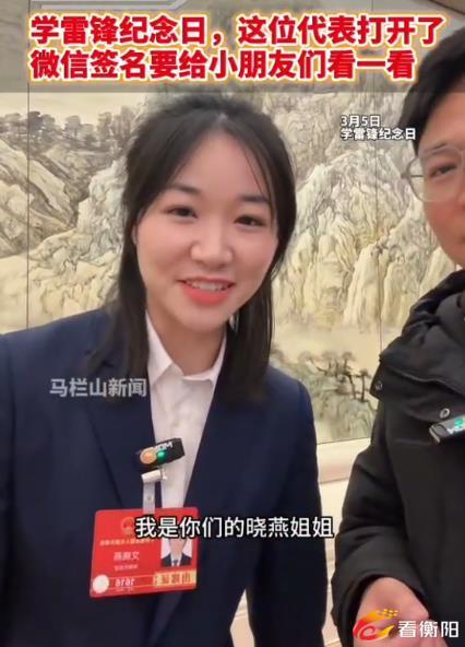 学雷锋纪念日 这位代表打开了微信签名要给小朋友们看一看