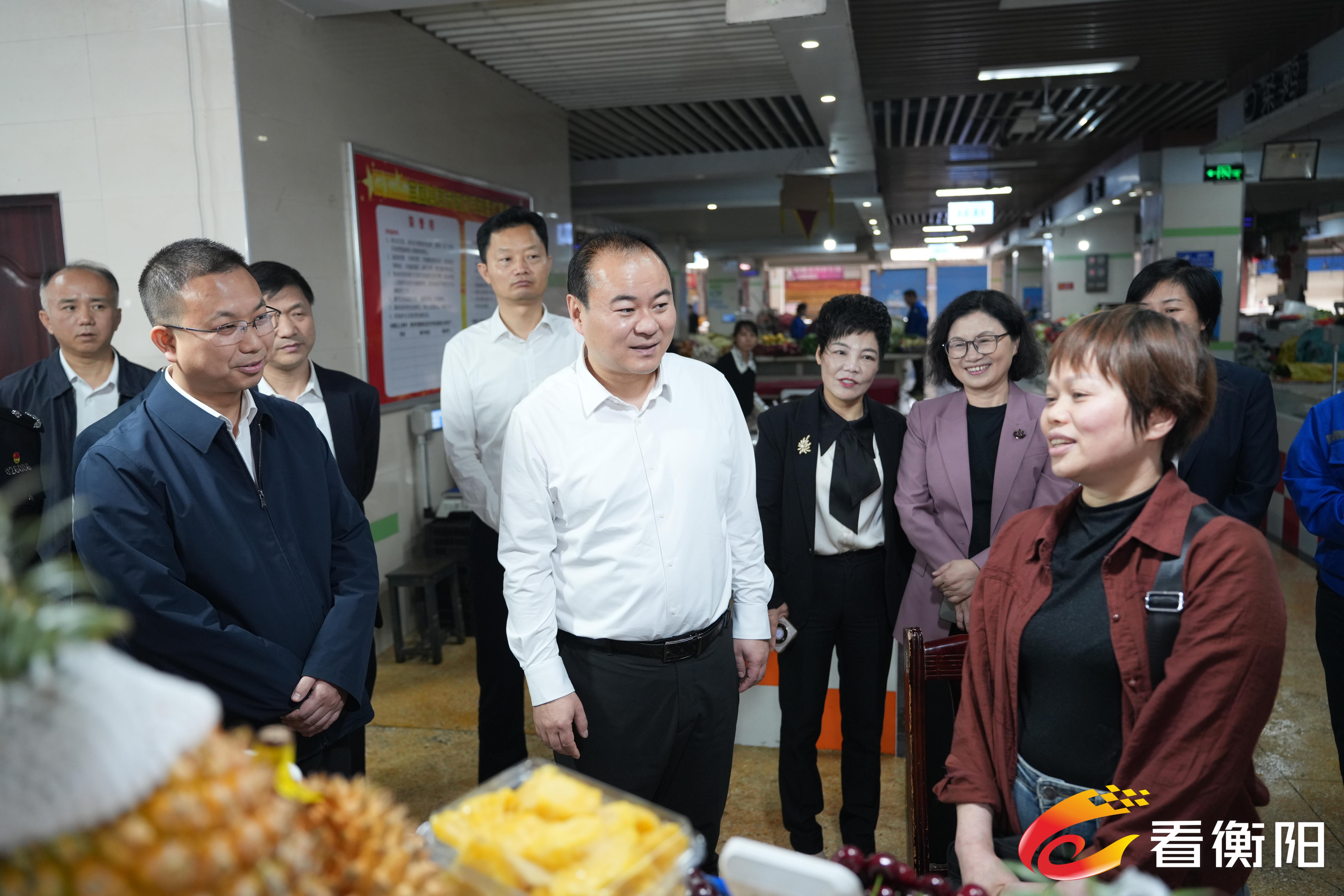 在珠晖区苗圃农贸市场,朱健与摊主亲切交谈,关切询问经营状况与实际困难,细致了解市场运营、环境卫生、消防安全等工作。他指出,农贸市场是展现城市文明的重要窗口,要从严抓好环境卫生整治,健全常态化保洁机制,持续优化市场及周边环境;要严把农产品质量安全关口,规范检测流程、落实应检必检,守护好群众“菜篮子”安全;要压实消防安全责任,主动解决商户经营难题,以精细化治理筑牢文明城市建设根基。