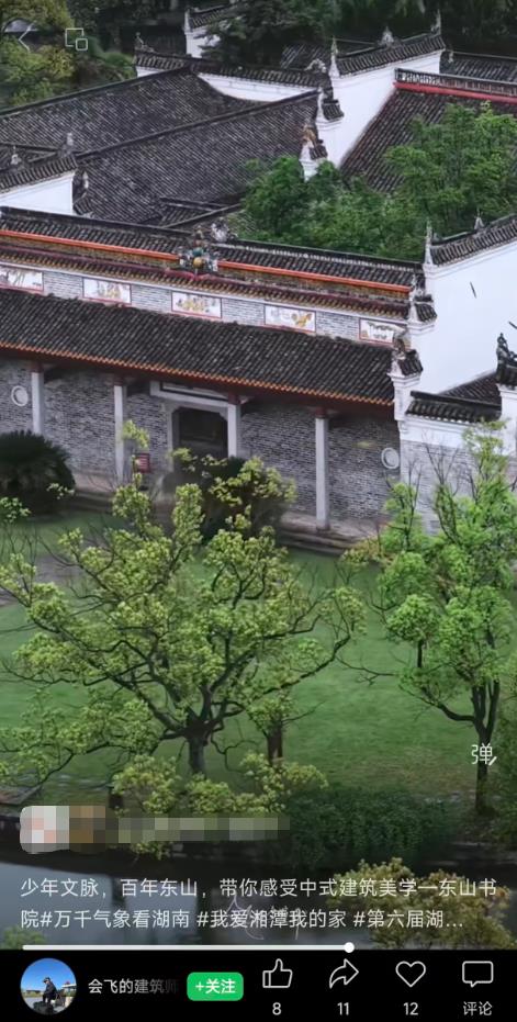 网络名人@会飞的建筑师 发挥专长,通过航拍技术将东山学校的全貌呈现给网友:少年文脉,百年东山,带你感受中式建筑美学——东山书院。